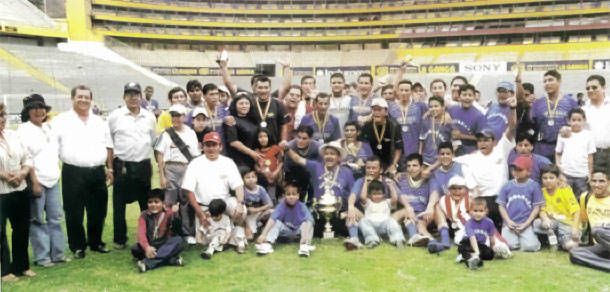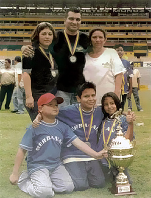 El Ing. Duhamel Aguirre, acompañado de su Sra. Esposa, hija y familiares luego de haberse proclamado Vicecampeones Nacionales |